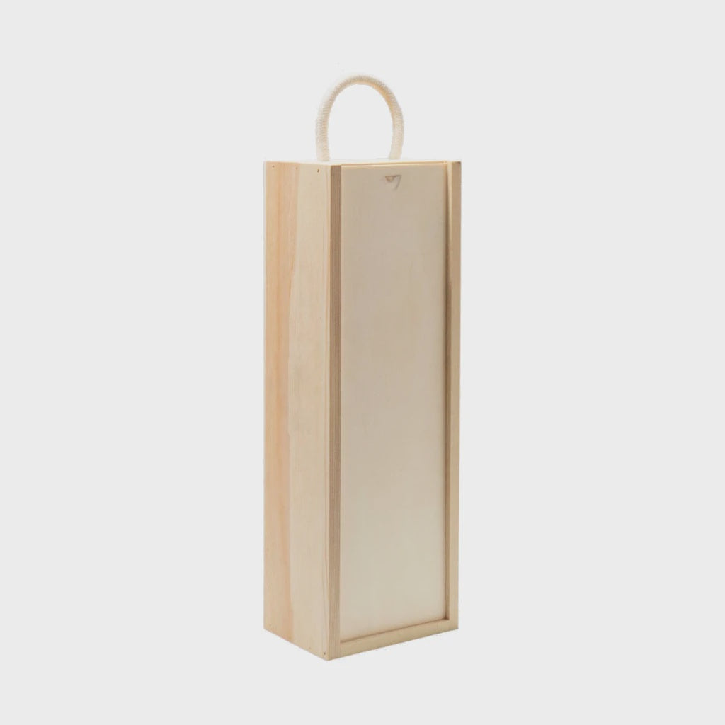 - Consists of a pine wood base, sliding lid and cotton rope handle