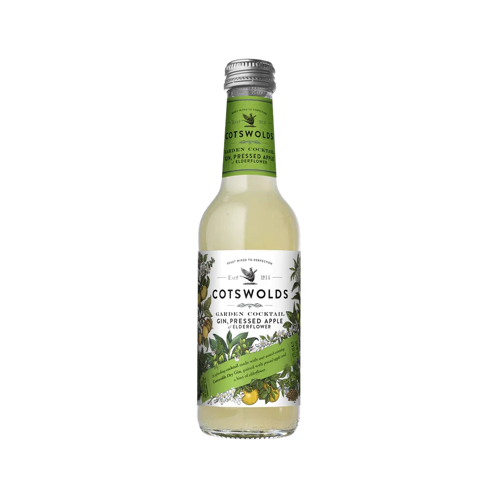 Cotswolds Garden is one of their signature cocktails, inspired by the beautiful country gardens surrounding the distillery. Made with their award-winning Cotswolds Dry Gin paired with pressed apple and a hint of elderflower, our ready-to-drink Cotswolds Garden Cocktail is perfect served chilled or on the rocks and garnished with cucumber and mint.